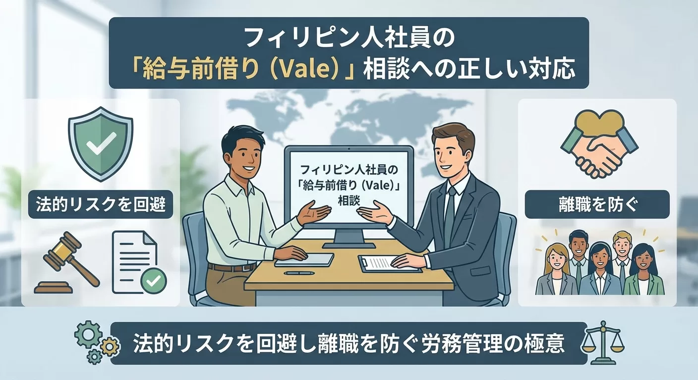 フィリピン人社員の「給与前借り(Vale)」相談への正しい対応|法的リスクを回避し離職を防ぐ労務管理の極意