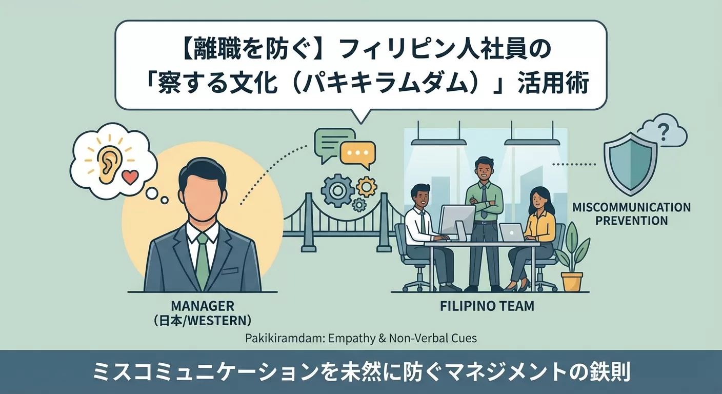 【離職を防ぐ】フィリピン人社員の「察する文化(パキキラムダム)」活用術|ミスコミュニケーションを未然に防ぐマネジメントの鉄則