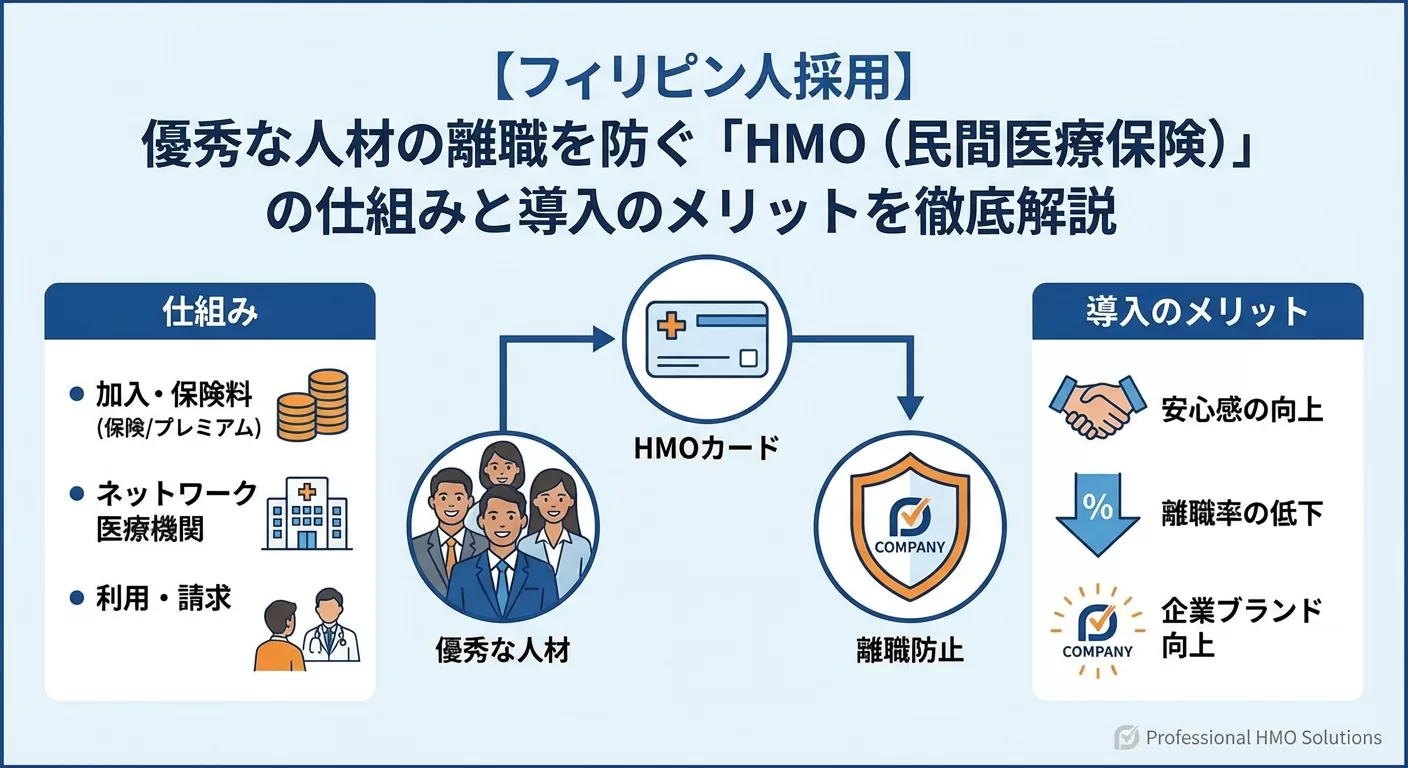【フィリピン人採用】優秀な人材の離職を防ぐ「HMO(民間医療保険)」の仕組みと導入のメリットを徹底解説
